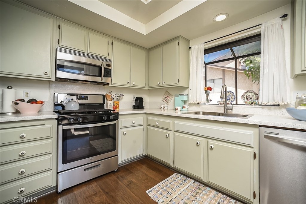 Very rare End Unit in Villa Maple is now available. Such a Lovely private front porch entertains you with ocean breeze. Home features 2 bed and 1 bath, all bedroom windows covered with custom made Plantation Shutters. Remodeled bathroom shower with stylish tiles and wooden floor through out. New quartz kitchen counter top and sink add contemporary look to this very lovely home. Must See!! Attached 2 car garage and conveniently located guest parking spaces. Easy access to Fwy 55 and close to Newport beach. The neighborhood has everything like Restaurants, Grocery markets, theater, fitness club and even a new community library. You can walk to most places nearby.