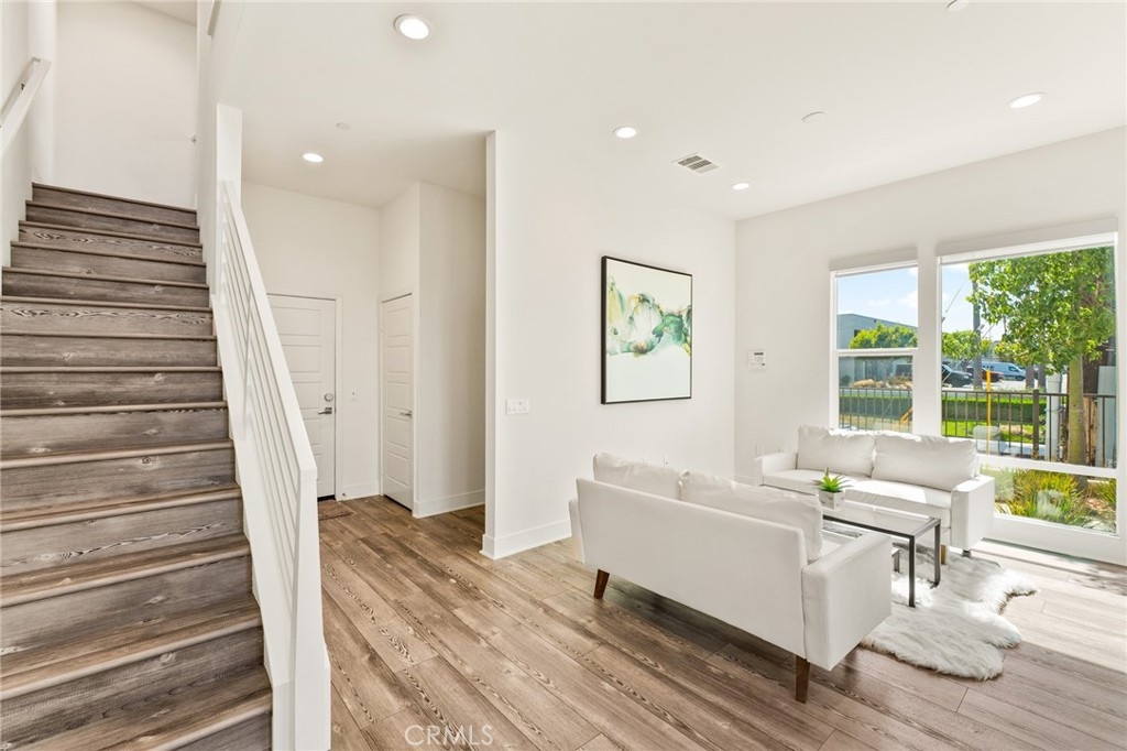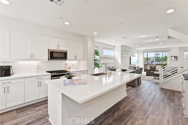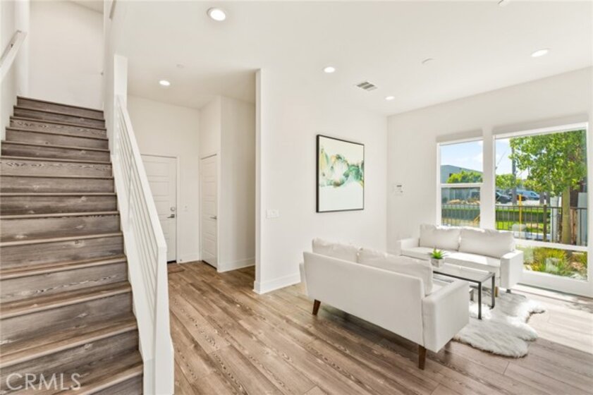 Welcome to the heart of Costa Mesa! This stunning, energy-efficient multi-level home that’s completely turnkey. Step inside to find a versatile ground-level office space with an ADA-compliant bathroom and direct access to the oversized two-car garage, making it the perfect live/work setup. On the second level, an expansive open floor plan awaits, filled with natural light from abundant windows. The chef’s kitchen showcases a large center island with seating, crisp white cabinetry, Quartz countertops, and stainless steel appliances. Just off the kitchen, the dining area and spacious living room flow seamlessly onto a private balcony — ideal for entertaining or unwinding. Upstairs, the third level features two guest bedrooms that share a full bathroom, along with the primary suite. The primary offers a spa-like retreat with dual sinks and a walk-in shower. As an added bonus, the home includes a rooftop deck — the ultimate space to relax, host gatherings, and enjoy the Southern California lifestyle. Community amenities include a dog run, garden, and BBQ area, while the location offers unmatched convenience with easy access to major freeways, shopping, dining, and entertainment.