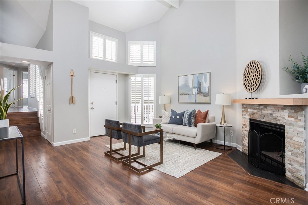 Welcome to Pentridge Cove located in the heart of Costa Mesa. This highly upgraded 2 bedroom, 2 bathroom condo is located in one of the most desirable parts of Costa Mesa, walking distance to the CAMP and The Lab. This condo showcases soaring ceilings with large windows, filling the property with natural light. Upon entering through the front door, you’re welcomed by a fireplace in the living area and a view of greenery through the sliders off the balcony in the back. Sliding glass lines the back of the property and next to the nook area right off of the upgraded kitchen. Two bedrooms including a large master with a completely remodeled master bathroom suite including a modern shower and separate tub. Both bedrooms feature vaulted ceilings, giving it an open feel. Hall bathroom has also been completely remodeled. Stackable laundry inside the unit. Great interior location of the unit, and 2 car garage with vaulted space above for storage. This is a dream unit at an incredible price, make it yours before someone else does first!
