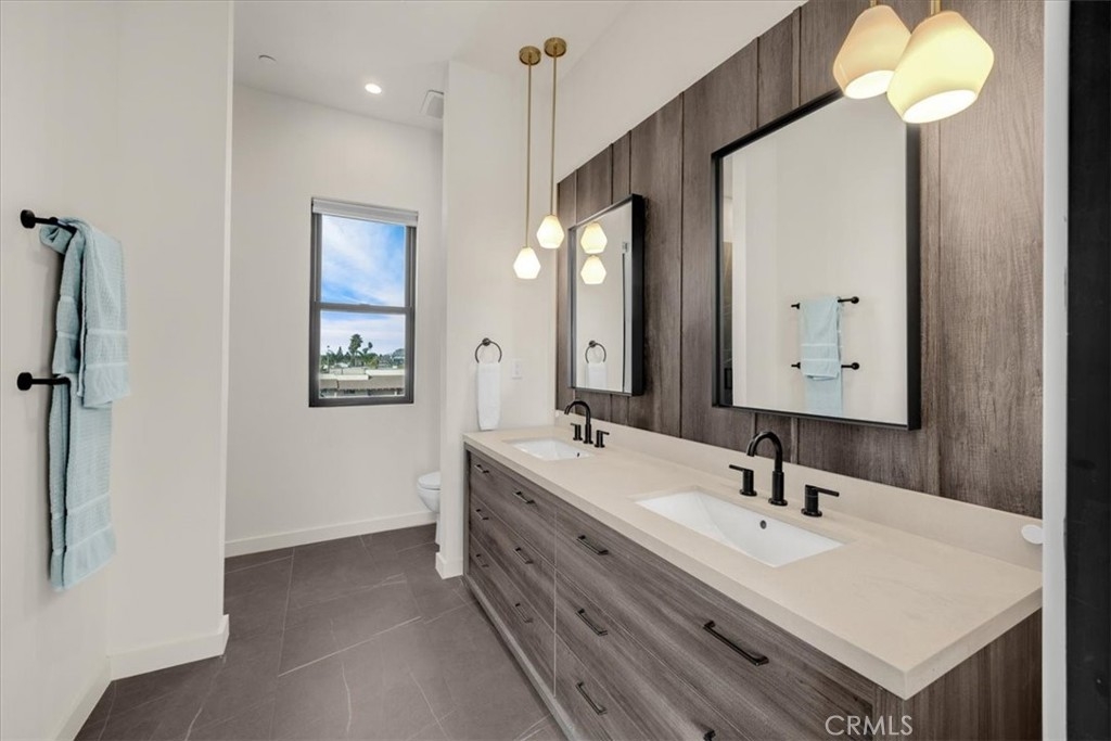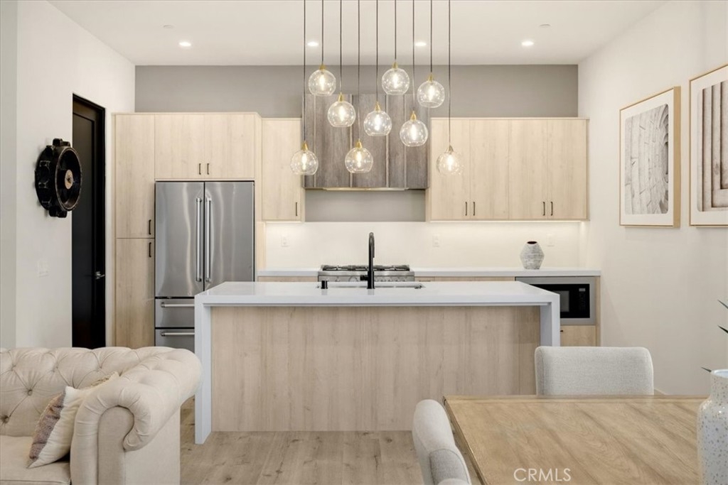 Welcome to the epitome of loft-style living in Costa Mesa—you're going to fall in love with this stunning space! This beautifully designed and professionally decorated loft is perfectly situated near Triangle Square, offering easy access to some of the best dining, shopping, and entertainment in the area. Just minutes from Newport Beach, Lido Village, and John Wayne Airport, you'll enjoy the ideal blend of coastal relaxation and urban convenience. As you step inside, you'll be greeted by soaring 12-foot ceilings and sleek, contemporary décor that creates an inviting, open atmosphere. This three-story home features an elevator for easy access—perfect for those days when you prefer not taking the stairs. With 3 spacious bedrooms and 2.5 bathrooms, this home boasts custom features that elevate it beyond the ordinary. The second level is home to a chef-inspired kitchen, outfitted with top-of-the-line Bertazzoni appliances, custom cabinetry, and luxurious quartz countertops. Beautiful laminate floors flow throughout, adding warmth and sophistication. The open-concept design effortlessly connects the expansive living and dining areas to the kitchen, while a cozy office/sitting nook off the main living space offers a perfect retreat. Additionally, a versatile room next to the office could be transformed into a wine cellar, cigar humidor, or anything your heart desires. On the third level, the en suite is a true sanctuary, featuring an oversized walk-in closet and a spa-inspired bathroom with dual vanities and a spacious walk-in shower. Step out onto your private, expansive rooftop patio to soak in the ocean breeze and enjoy panoramic views of the city lights. Two generously sized bedrooms and a full bathroom complete the upper floor. For added peace of mind, the home is equipped with fire sprinklers on all three levels. Car enthusiasts will appreciate the 2-car garage, which boasts 13-foot ceilings and a car. The pristine epoxy-finished floors complete the space in style. Upon entering through the garage, you'll find convenient laundry facilities, two storage rooms, and the elevator. With so many exceptional custom features throughout, this home must be seen in person to be fully appreciated.