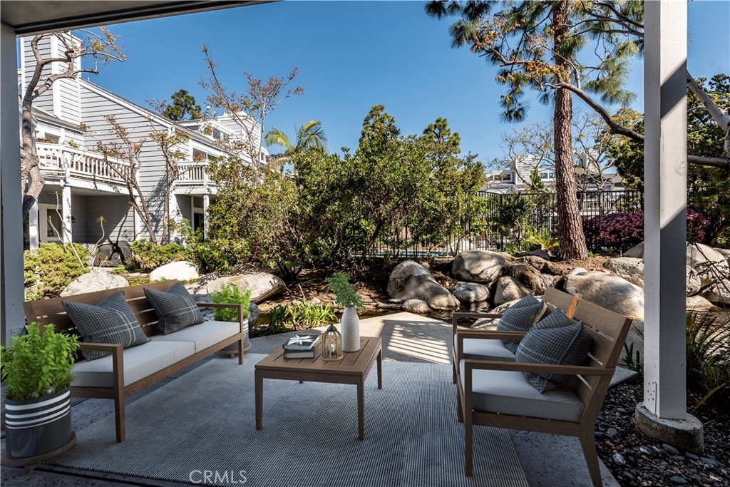 Located in the center of EVERYTHING! Walk into your front door and feel like you are on vacation. Head out to your personal patio, sit down, and relax enjoying your very own majestic waterfall splashing into the adjacent babbling brook. Or take a dip in the beautifully landscaped pool and spa. This 2 bed and 2 full bath condominium won awards for its unique architectural design. The expansive space between the living area and bedrooms provides the desired privacy not found in most floorplans. Conveniently located near renowned restaurants, premium shopping within South Coast Plaza, and the Segerstrom Center for the Arts. If you need to commute, quickly access the 405, 55, and 74 freeways within minutes of home. If you are looking for a perfect starter home downsizing in comfort, you don’t need to look any further. Home recently appraised at $725,000! With a little TLC, this will be your perfect home!