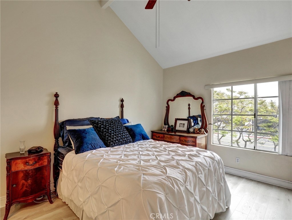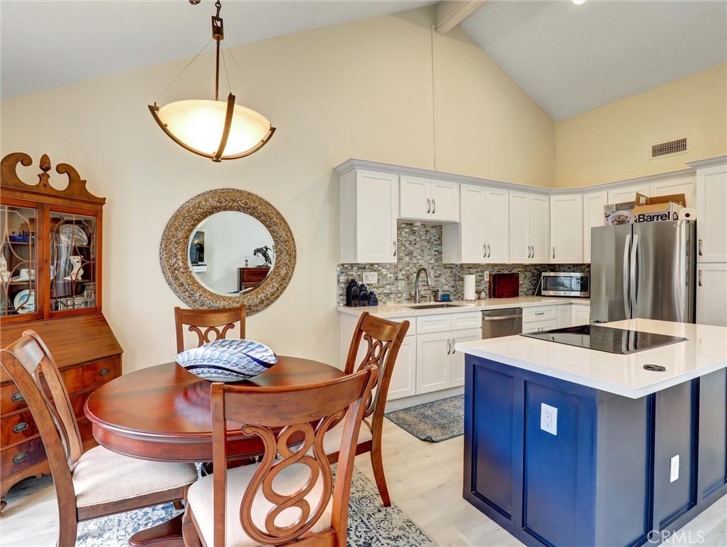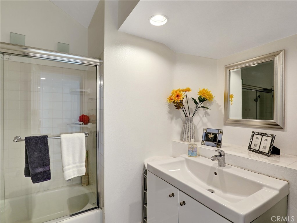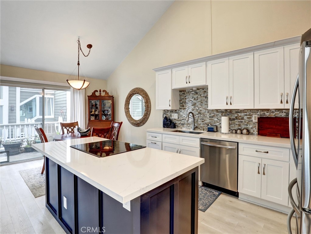 Light and airy top floor condo in the highly desirable Pentridge Cove. Centrally located, this spacious open space designed, 2 bedroom 2 bathroom floor plan brings in plenty of light with its large picture windows and architecturally appealing volume ceilings. Renovated kitchen has plenty of counter and cabinet space as well as soft touch close cabinetry. Nicely sized bedrooms have built in closet organizers, and bathrooms are fresh, bright and clean. Patio overlooks the interior of the community, and spacious two car garage is conveniently located just across from staircase access to unit.