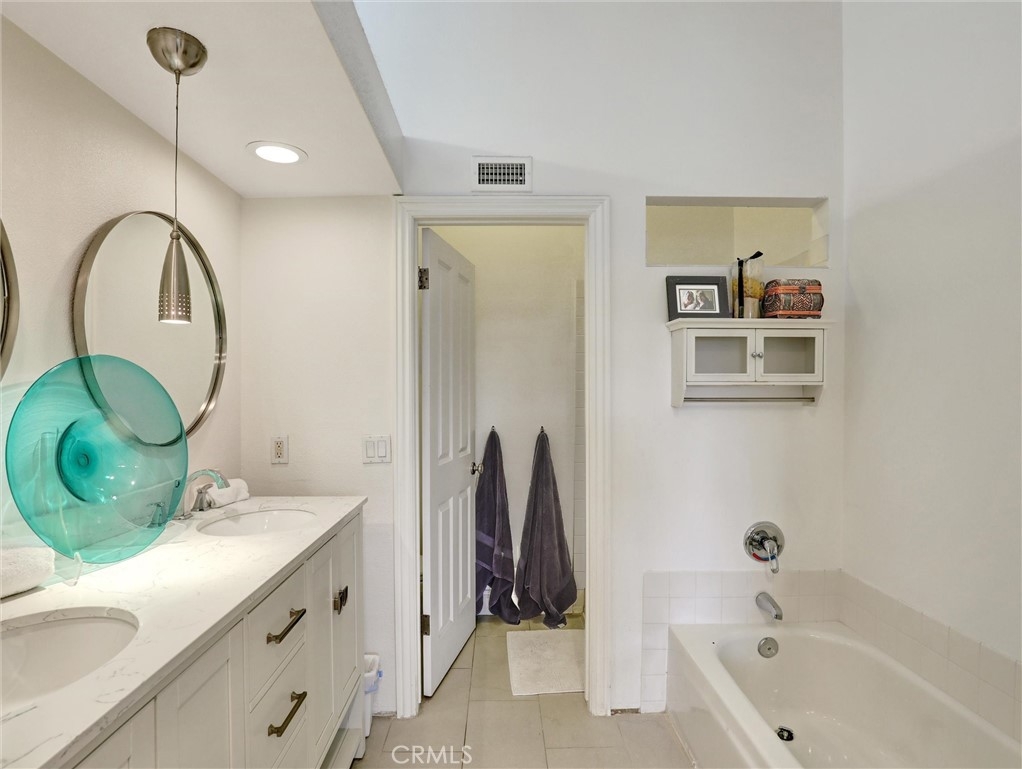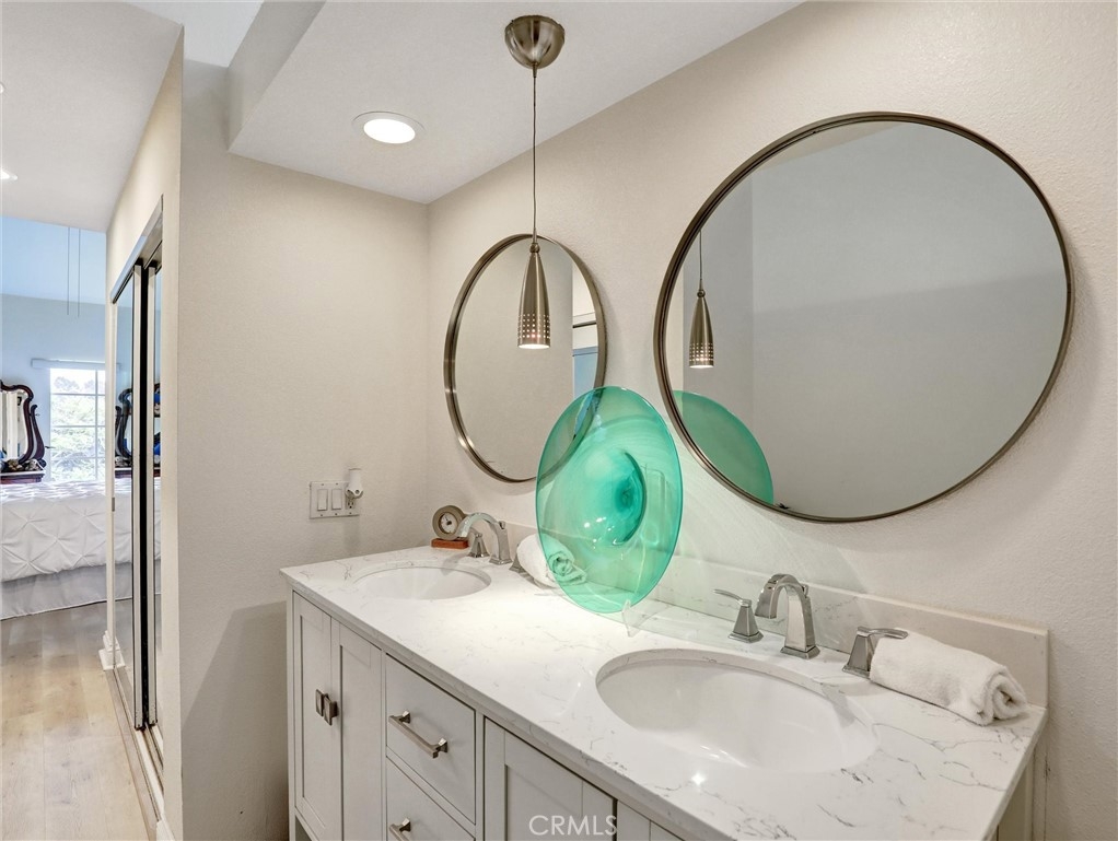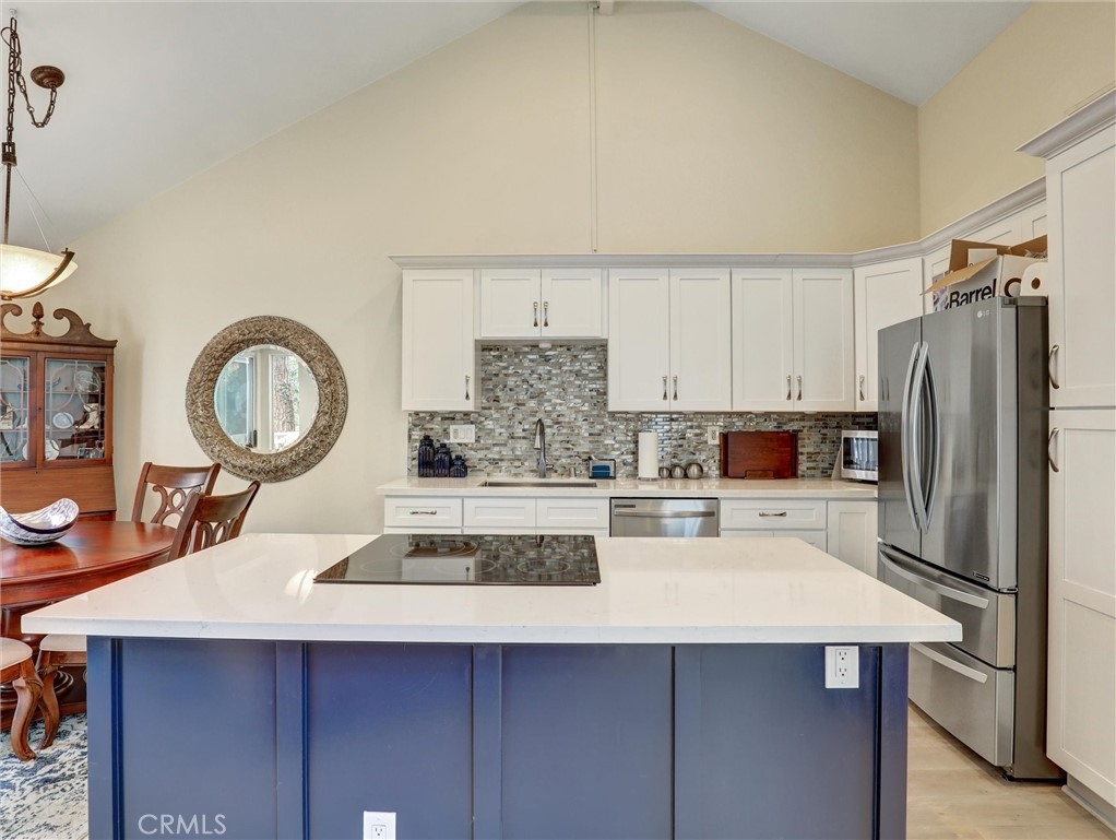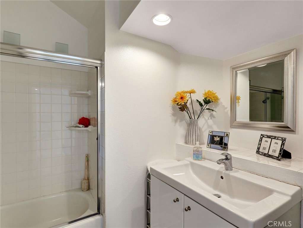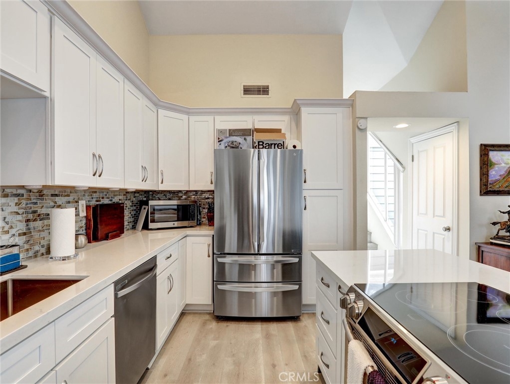 Light and airy top floor condo in the highly desirable Pentridge Cove. Centrally located, this spacious open space designed, 2 bedroom 2 bathroom floor plan brings in plenty of light with its large picture windows and architecturally appealing volume ceilings. Renovated kitchen has plenty of counter and cabinet space as well as soft touch close cabinetry. Nicely sized bedrooms have built in closet organizers, and bathrooms are fresh, bright and clean. Patio overlooks the interior of the community, and spacious two car garage is conveniently located just across from staircase access to unit.