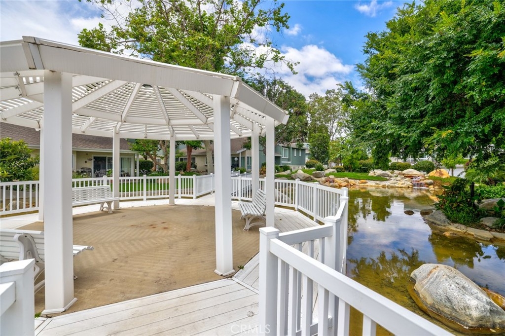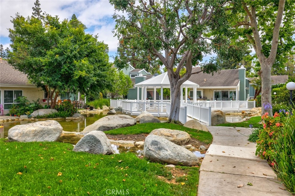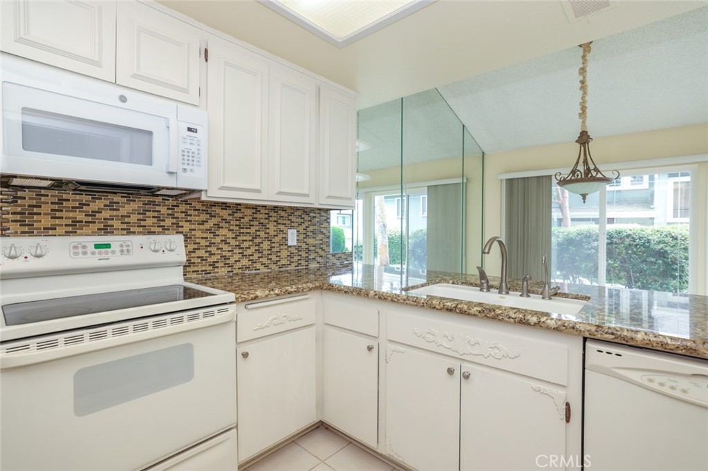 Lots of natural light shines through this spacious townhome! The open concept living area is accentuated by high ceilings, a custom mirrored wall, lots of windows to let the sun shine through, cozy gas fireplace and built in cabinets. The dining area will comfortably accommodate a large table and is conveniently located near the kitchen which boasts granite countertops. The first bedroom is located on the main level which can be used as an office or bedroom. The staircase leads to the second floor where there are two more spacious bedrooms with ceiling fans and two full bathrooms. The main room boasts mirrored closets and a connecting bathroom with a roman tub. There is direct home access from the two car garage which includes an automatic opener. For your convenience, there are lots of built in cabinets in the garage. This complex is charming with lots of pathways for leisurely strolls with greenery and brooks throughout. This prime location is just seconds away South Coast Plaza, restaurants, shopping and more. Also, for your outdoor enjoyment, nestled in the heart of the complex is a community pool, spa, clubhouse, gazebo, ball basketball and pickleball court.