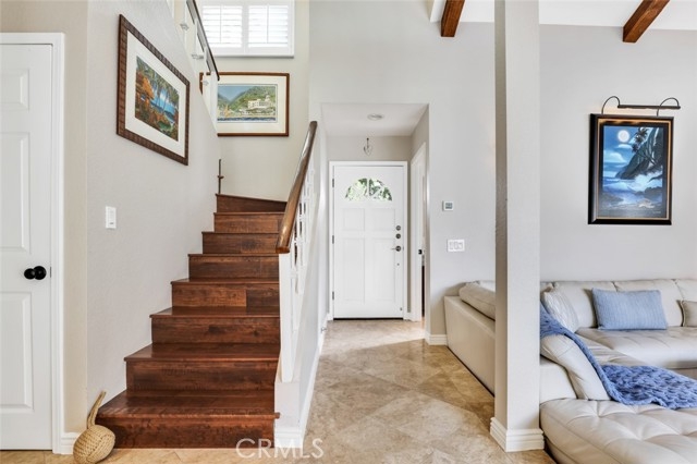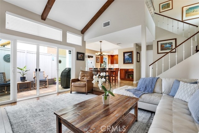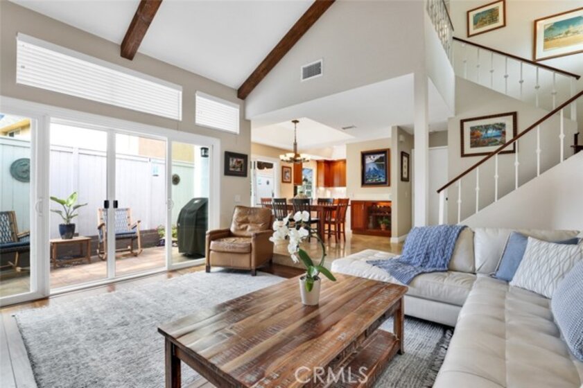 Exceptional home in a prime Eastside Costa Mesa location, blending sophisticated upgrades with coastal convenience. Originally a 3-bedroom, 2.5 bath per tax records, the home is currently configured as 2 bedrooms plus an office/loft, with sellers offering a credit to easily convert back to the third bedroom, this residence has been meticulously maintained and thoughtfully enhanced throughout. Upon entry, you’re welcomed by soaring vaulted and beamed ceilings, an open-concept living room with a cozy fireplace, and modern travertine and hardwood flooring. The chef’s kitchen showcases Catalina quartz countertops, all Kitchen-Aid stainless steel appliances, and custom solid aged cherry cabinetry—ideal for entertaining or everyday living. The dining area and enclosed patio extend the living space, while the versatile loft area offers the perfect setting for a home office, library, or guest overflow. Retreat to the well-appointed bedrooms with vaulted ceilings, plantation shutters, ceiling fans, and beautifully updated bathrooms featuring modern finishes. The private tiled patio, complete with an electric retractable awning, is perfect for relaxing or entertaining in true Southern California style. Recent upgrades include new dual-pane energy-efficient windows, a newer A/C system with updated ducting, furnace, water heater, and LG washer/dryer. An oversized 2-car garage provides ample storage, while the included refrigerator, washer, and dryer add to the move-in ready appeal. Termite clearance will be provided by seller for added peace of mind. Just minutes from the beach, Back Bay trails, airport, freeways, world-class shopping, dining, and top-rated schools in Newport-Mesa district, this turnkey property offers the very best of Eastside Costa Mesa living. Rarely does a home of this caliber and location become available. A must see!!